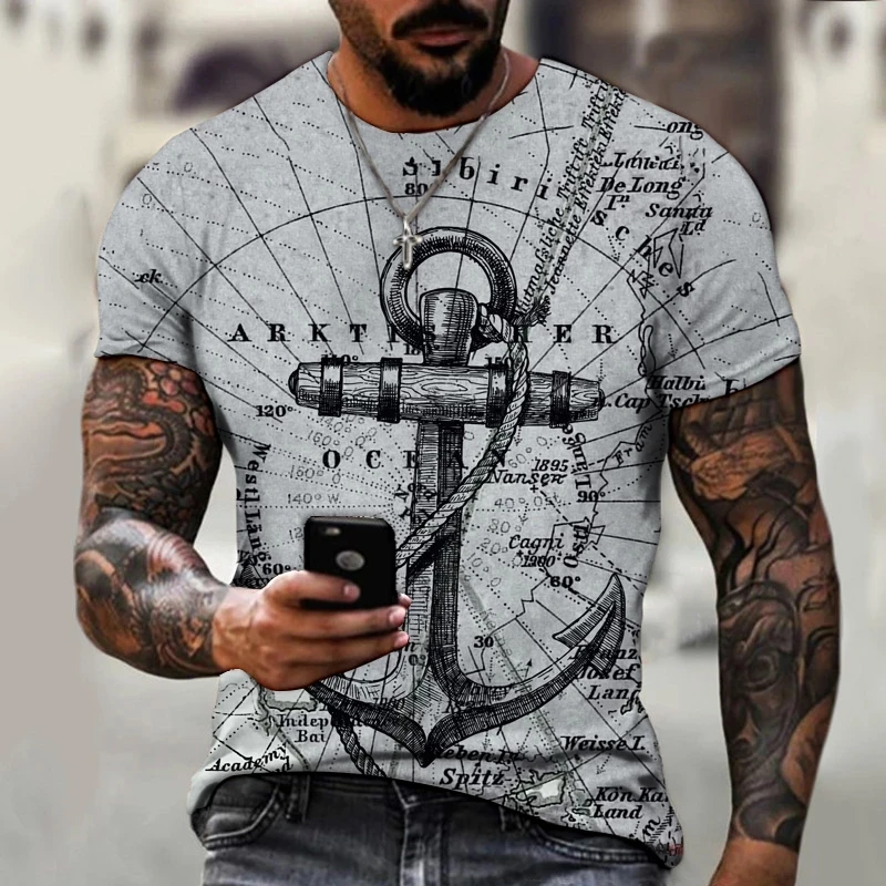 Футболка мужская с коротким рукавом, круглым вырезом и принтом морского якоря, 90-6XL, лето 2021