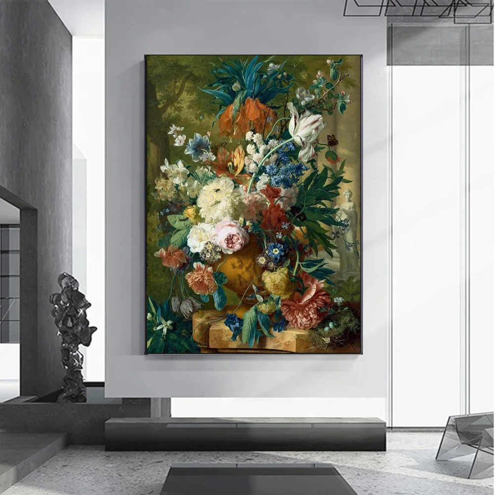 Настенный декор, натюрморт с цветами в стеклянной вазе, европейская винтажная Картина на холсте, скандинавский художественный постер и принты, картины