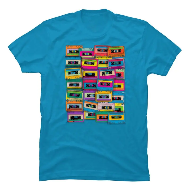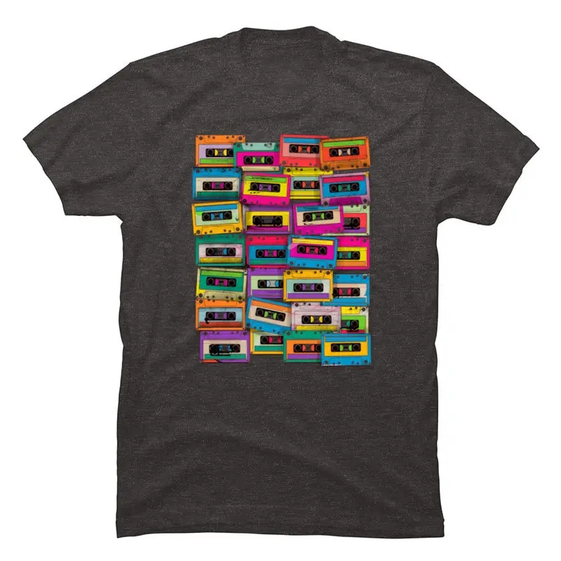 Винтажная неоновая музыкальная футболка с кассетной лентой, популярные футболки DJ Рок в стиле хип-хоп для мужчин, Осенние Топы из 2021 хлопчатобумажной ткани, 100%