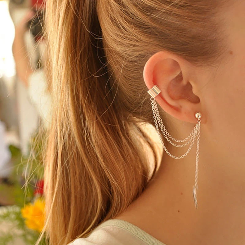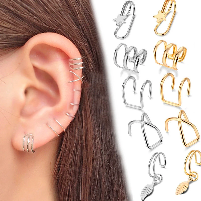 2021 Модный женский набор сережек-гвоздиков в виде листьев и манжет для ушей, не имитация, пирсинга, серьги-гвоздики для хряща, ювелирные изделия для девочек