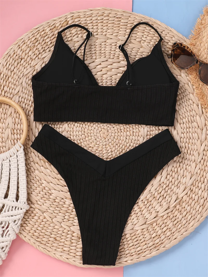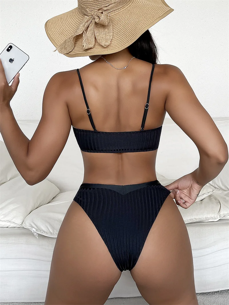 Комплект бикини женский, однотонный, с высокой талией, летний