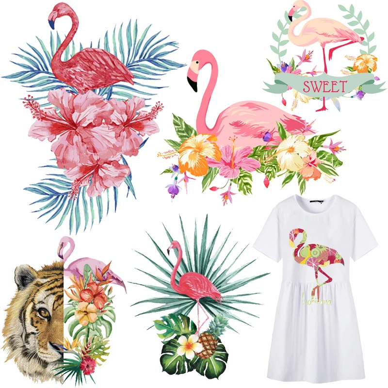 Фламинго патч Железный На переноске для одежды термоклей патчи приложения Diy термостикер на одежду цветок аппликация