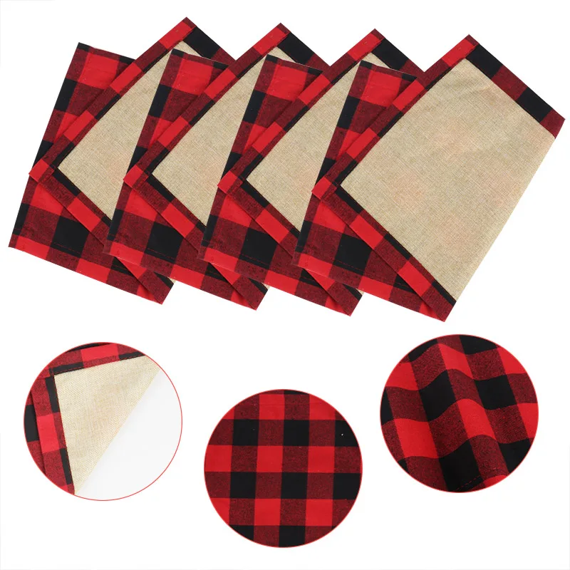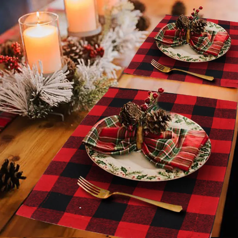Рождественские украшения, салфетка в клетку буйвола, коврик для обеденного стола красногочерного цвета, рождественские украшения, новый год 2022, домашний декор