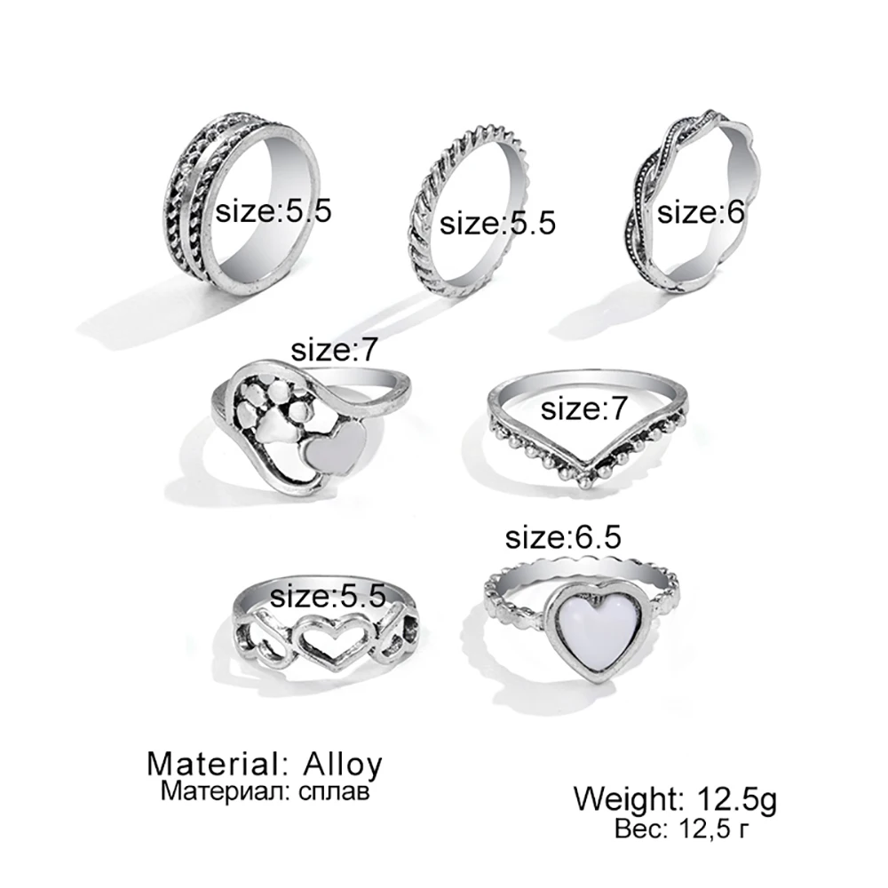 Новые винтажные серебряные кольца на палец, набор для женщин и девочек, кольцо в стиле ретро с сердечком любви, готические украшения, модные аксессуары