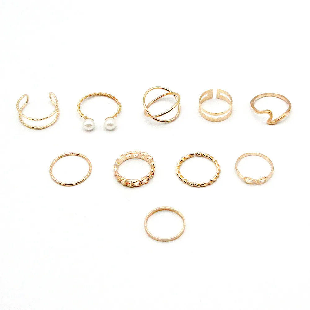 Набор колец из 10 частей с жемчугом и геометрическим рисунком, регу...