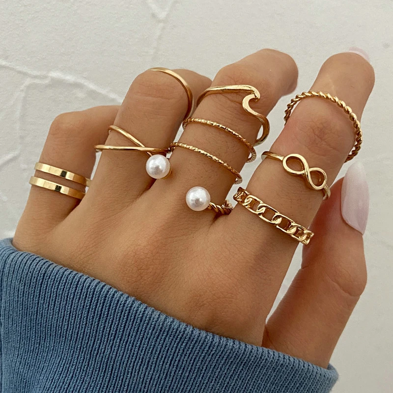Набор колец с жемчугом в стиле бохо для женщин, модные ювелирные ук...