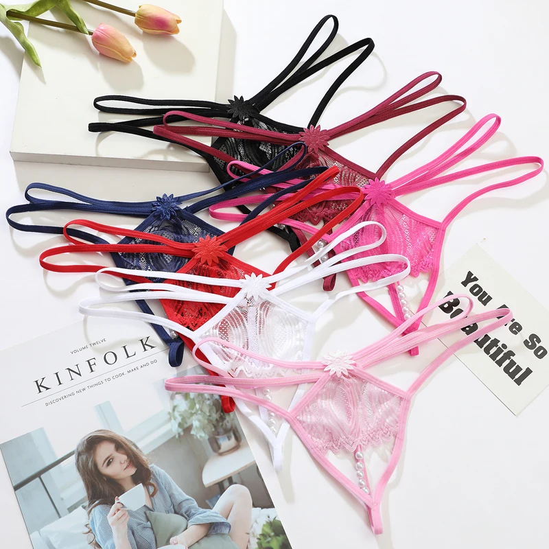 Женские стринги с бисером, сексуальные трусики для девочек, нижнее белье с жемчужинами, полый цветок, стринги, XXS-M