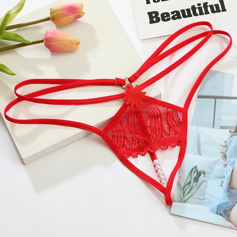 Женские стринги с бисером, сексуальные трусики, женское нижнее белье с жемчугом, полые цветочные G-стринги, раньше 5028