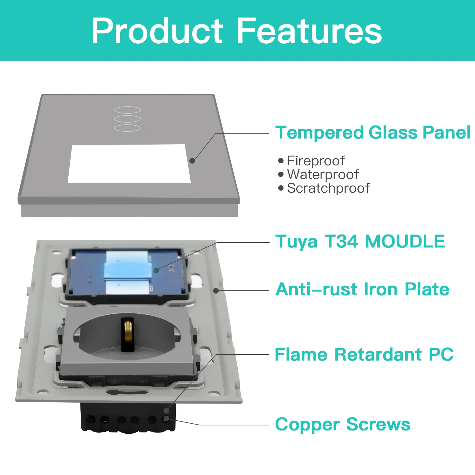 Сенсорный выключатель Bseed Zigbee Smart, европейский стандарт, 3 клавиши, настенная розетка, стеклянная панель с кристаллами