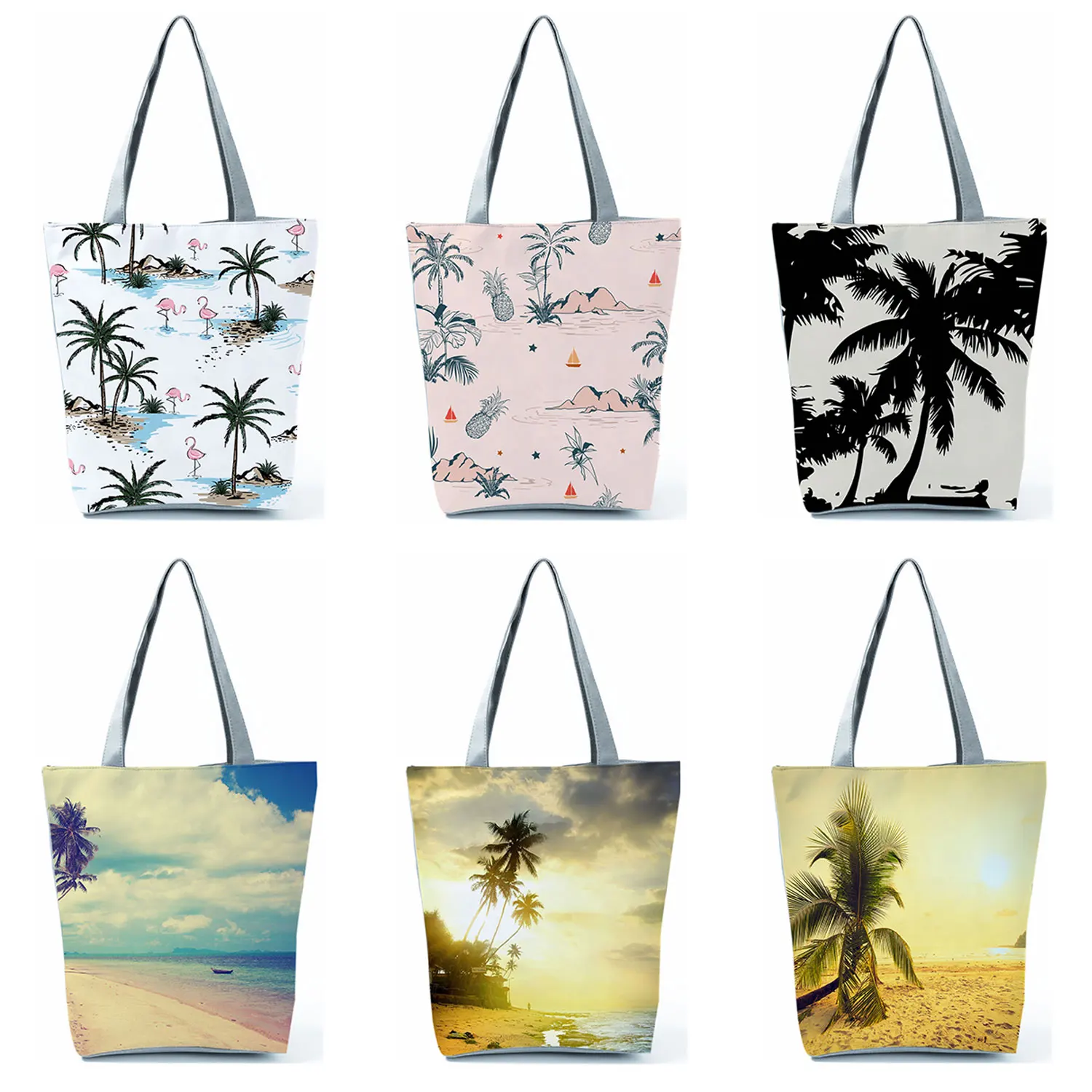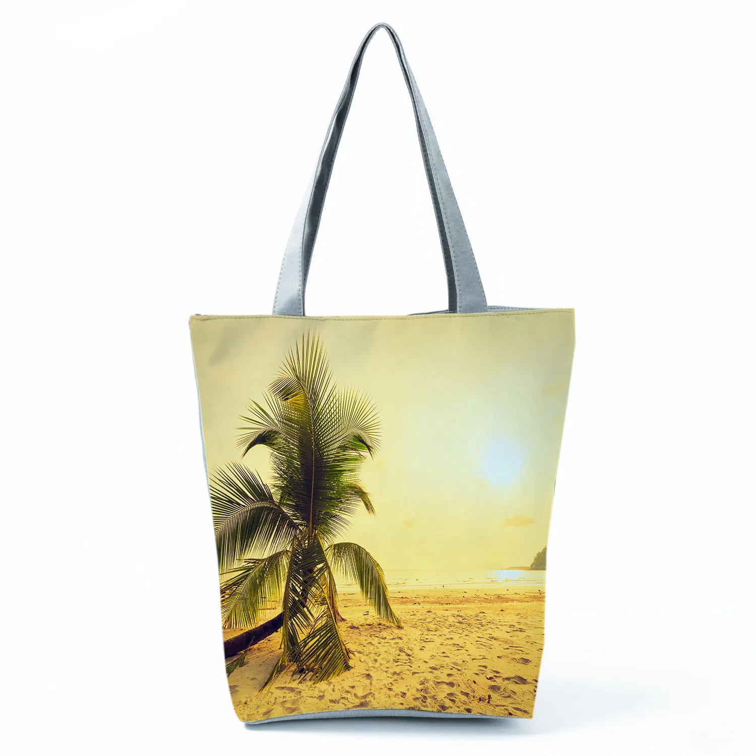 Пляжная сумка-тоут с пейзажем заката, с принтом "кокосовое дерево", Повседневная сумка на плечо, уличная Портативная сумка для покупок, экологичная