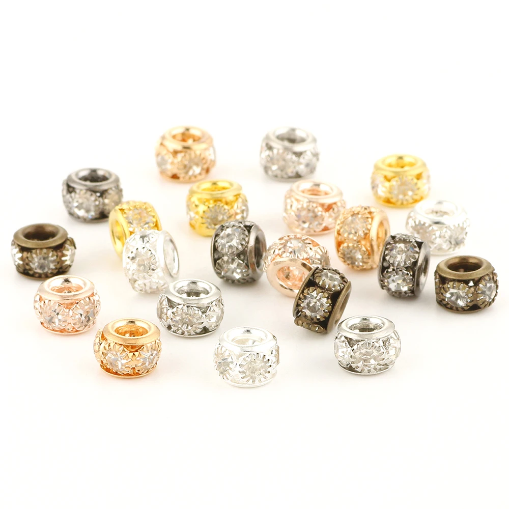 Медные бусины со стразами и большим отверстием для круглых кожаных ...