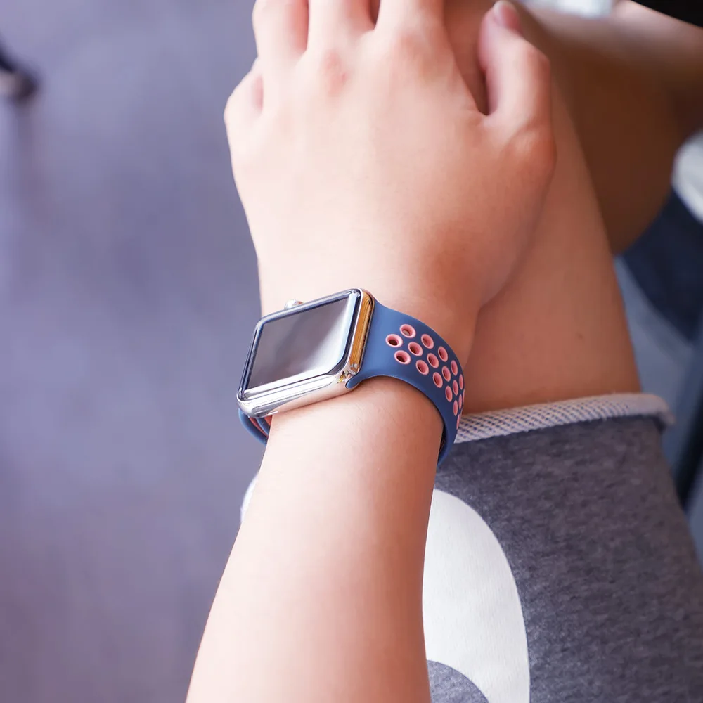 Силиконовый ремешок для apple watch 44 мм 42 мм 40 мм 38 мм дышащий...