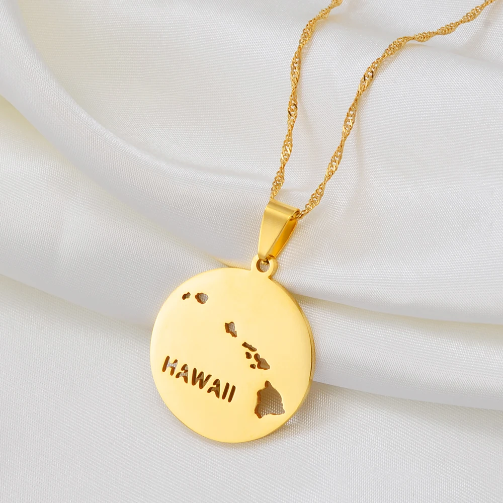 Круглое ожерелье Anniyo с подвесками в виде карты Гавайского штата, гавайская бижутерия, подарок #256521
