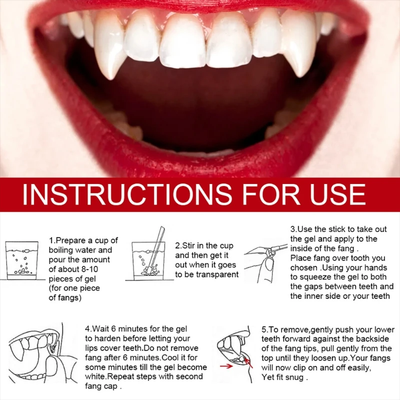 Зубные протезы вампира, 1 корневой канал, гранулы, клейкие, 2 пары,...