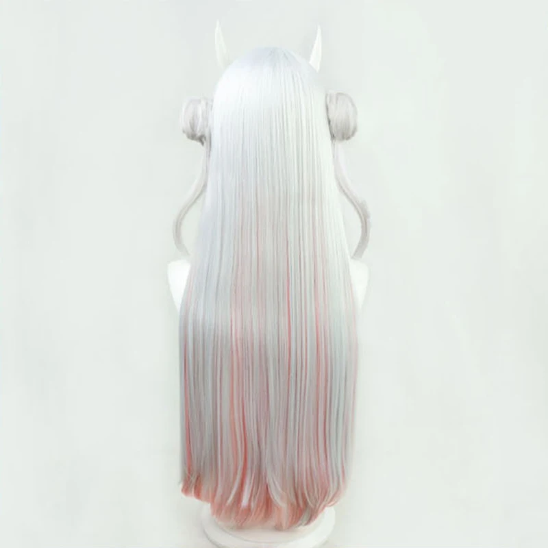 Парик накири аяме VTuber, булочки, рога, колокольчики, оливы, реквизит для косплея, серо-розовые длинные прямые волосы Youtuber для девочек, голографические волосы без граффити