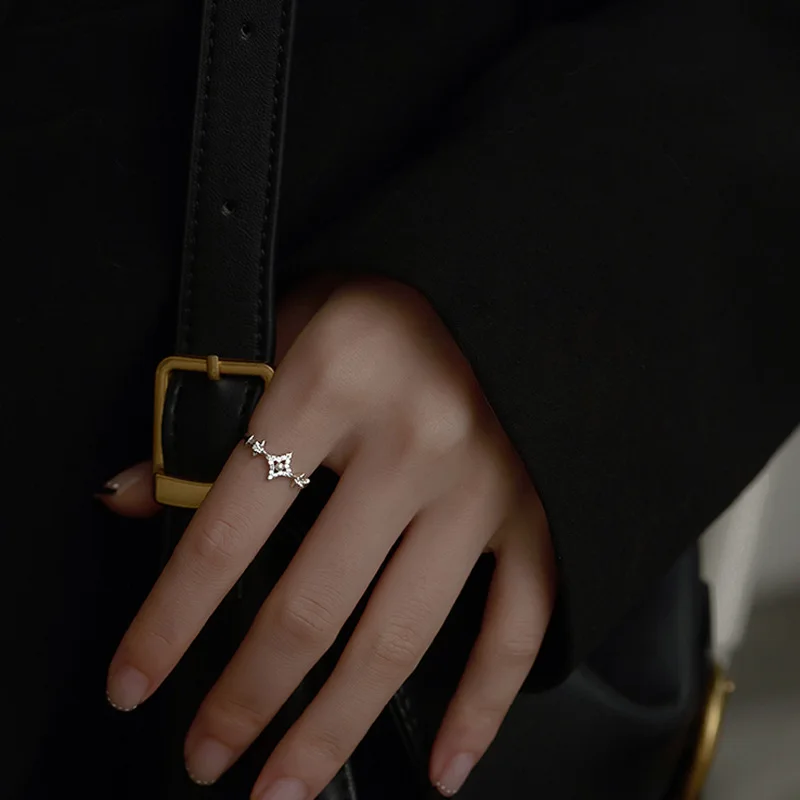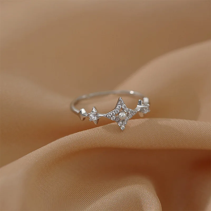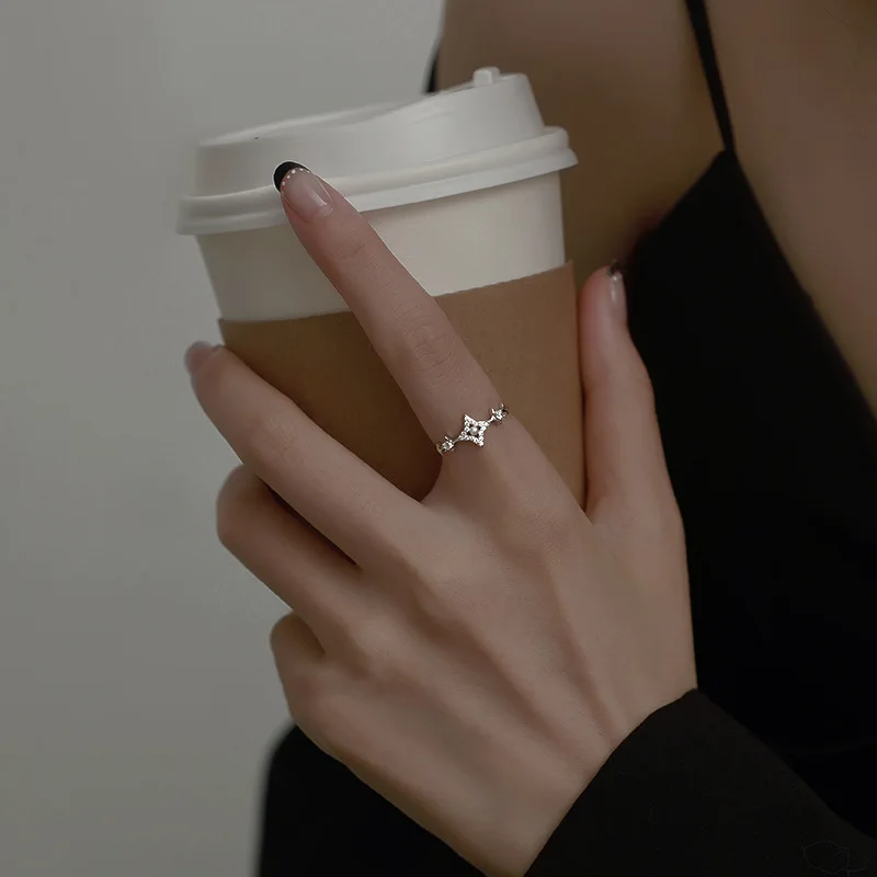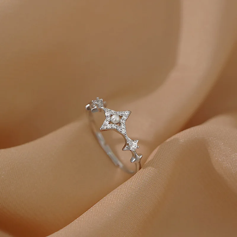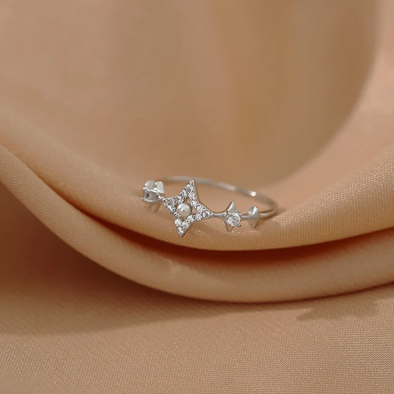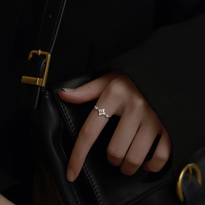 Женское Открытое кольцо из серебра 925 пробы, с четырьмя острыми звездами