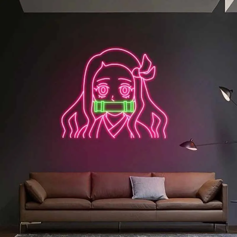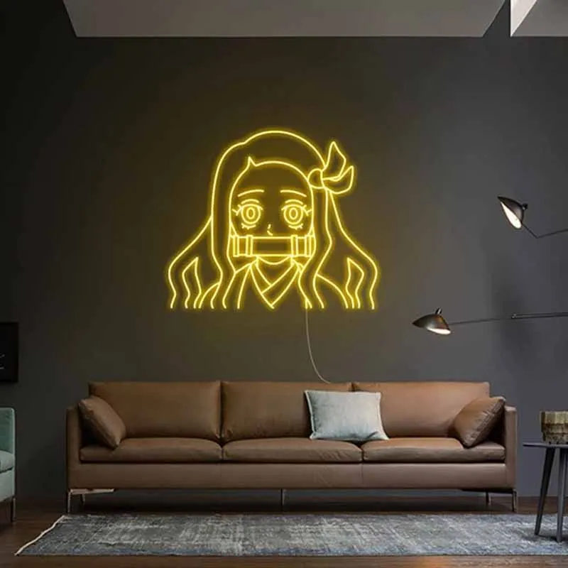 Светодиодная эстетика Милая Неоновая Гибкая световая вывеска Nezuko домашний декор для стены кавайное аниме украшение для спальни Фреска