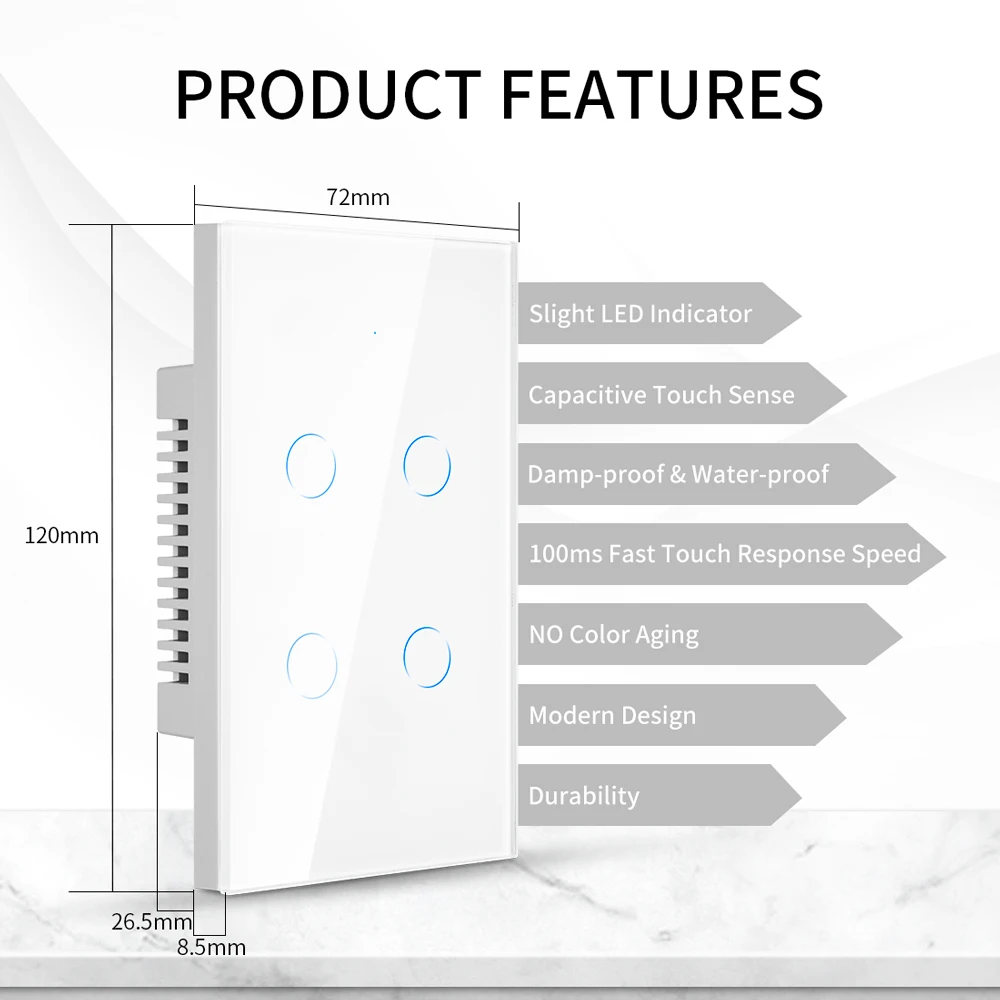 Настенный сенсорный выключатель, выключатель света с Wi-Fi, с управлением через приложение, умный пульт дистанционного управления, стандарт США, без нейтрального провода, Ac110v-240v