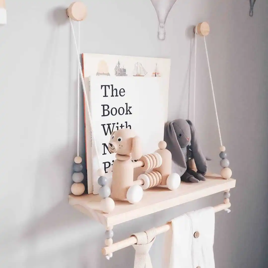 Подвесная деревянная полка в скандинавском стиле для детской комнаты