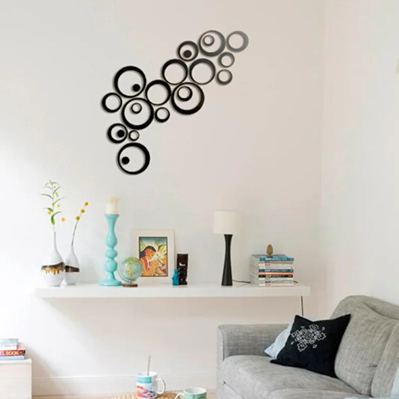 24 шт./компл., круглые зеркальные наклейки на стену, трехмерное фоновое настенное украшение для спальни, акриловые наклейки на кольца