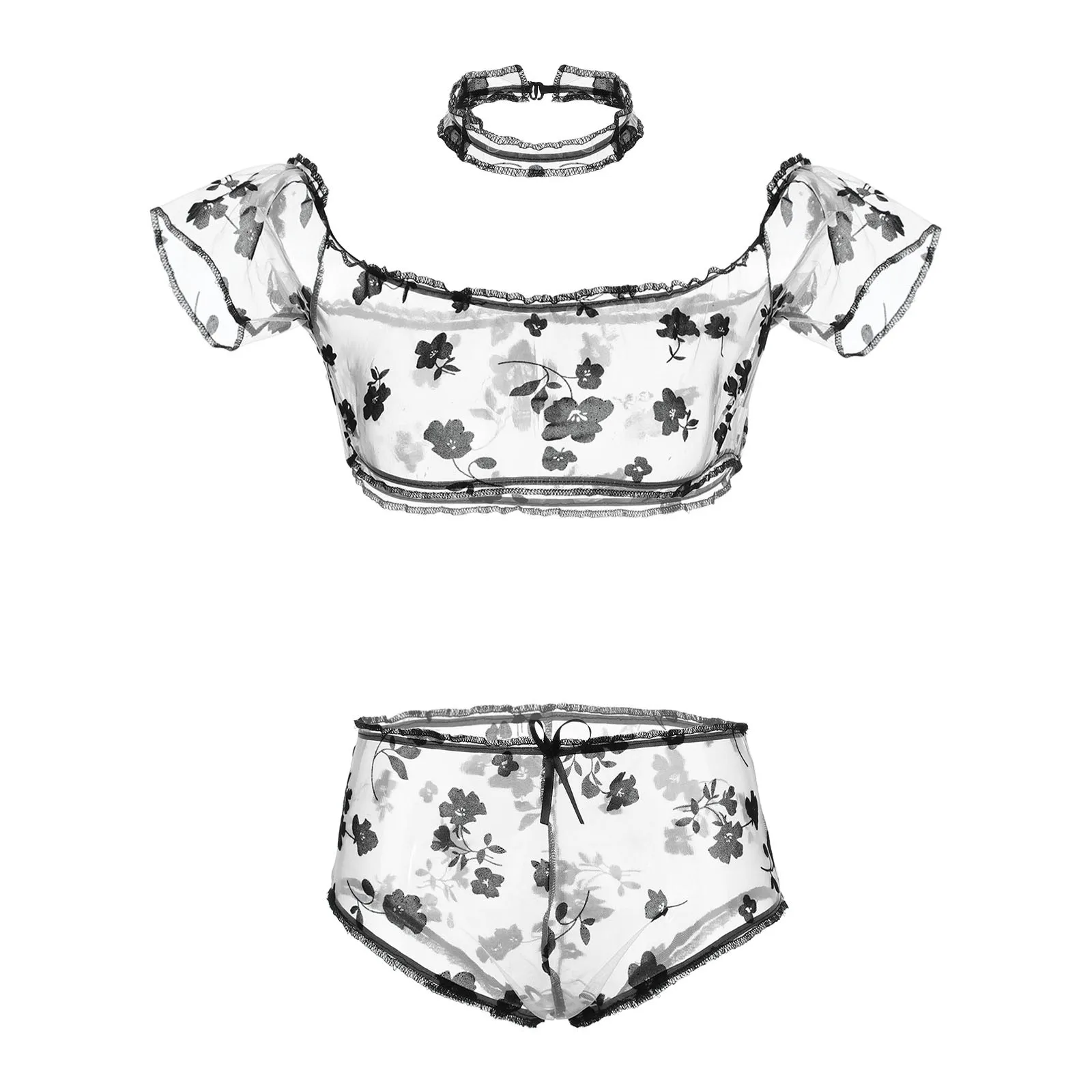 Сексуальное нижнее белье с цветочной вышивкой, стринги, нижнее белье, новая одежда для сна, кольцо на шею