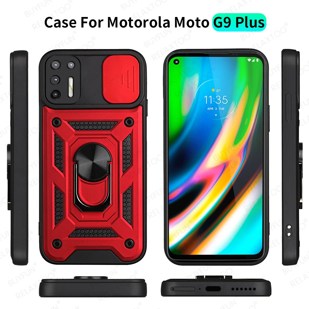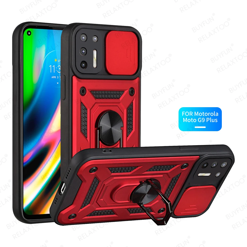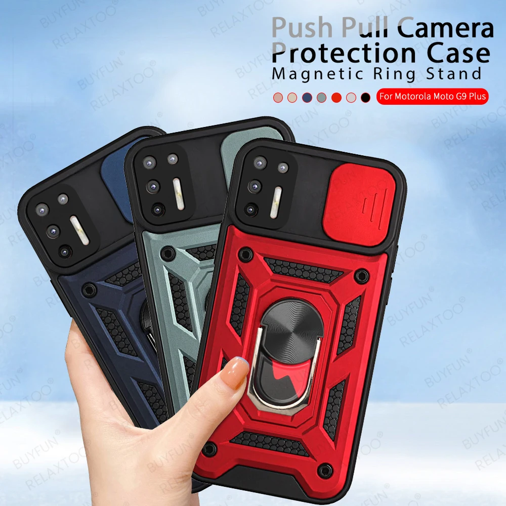 Противоударный чехол-подставка с кольцом для Motorola Moto G9 Plus, защитный чехол для телефона с нажимной кнопкой для камеры, чехлы для Rola MotoG9 G9Plus