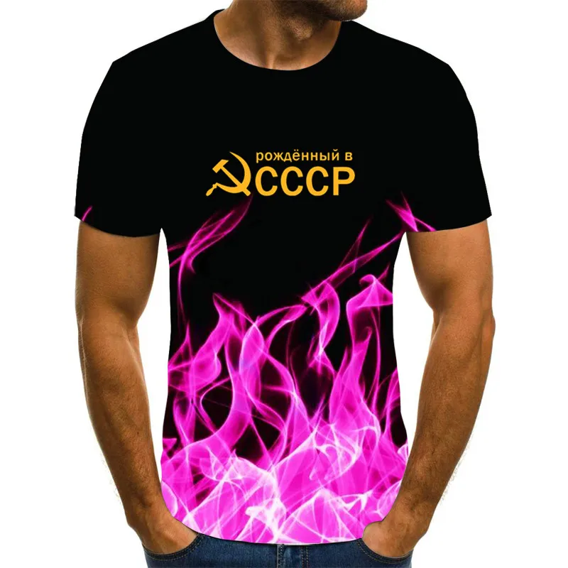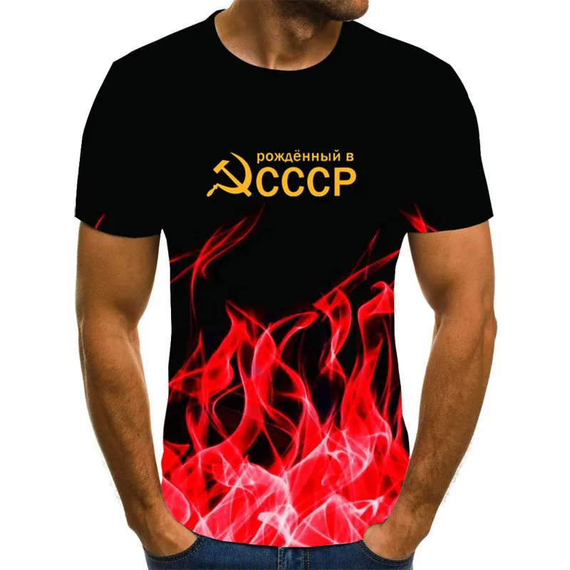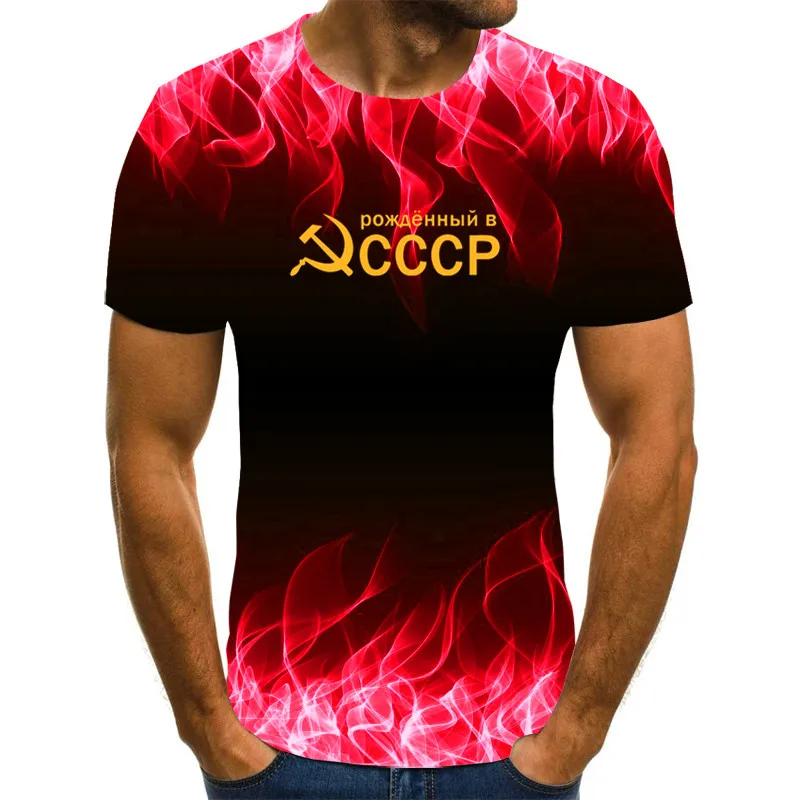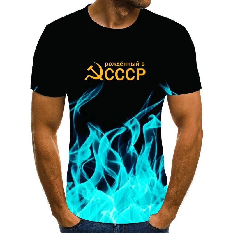 Футболка мужская с 3D-принтом, модная дышащая Повседневная рубашка с принтом пламени, советский СССР, с круглым вырезом и коротким рукавом