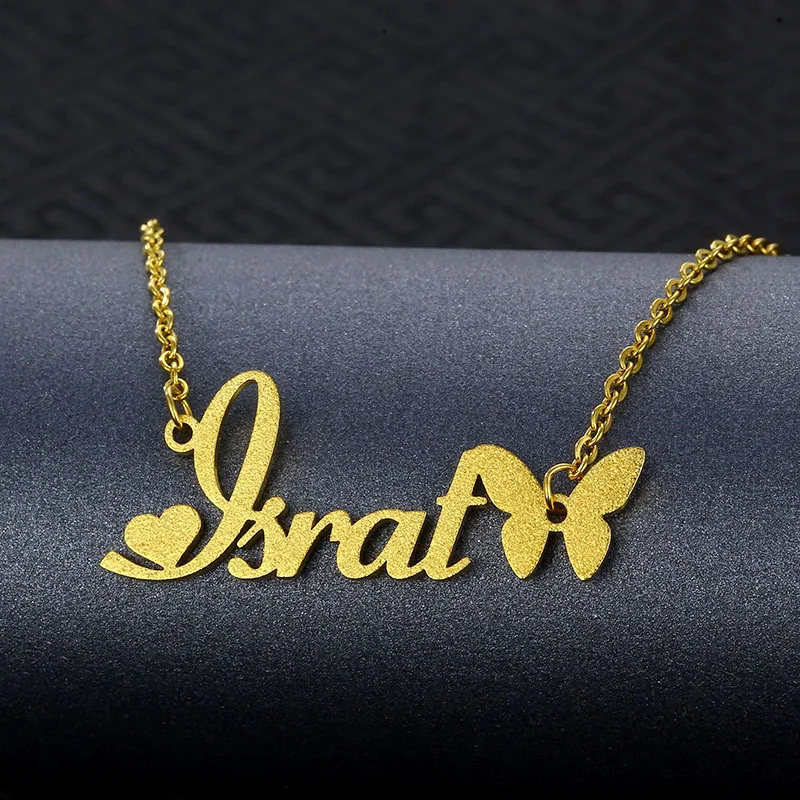 Индивидуальное ожерелье из нержавеющей стали с надписью, персонализированное ожерелье-чокер с бабочкой, подвеска, мужская и женская табличка, подарок