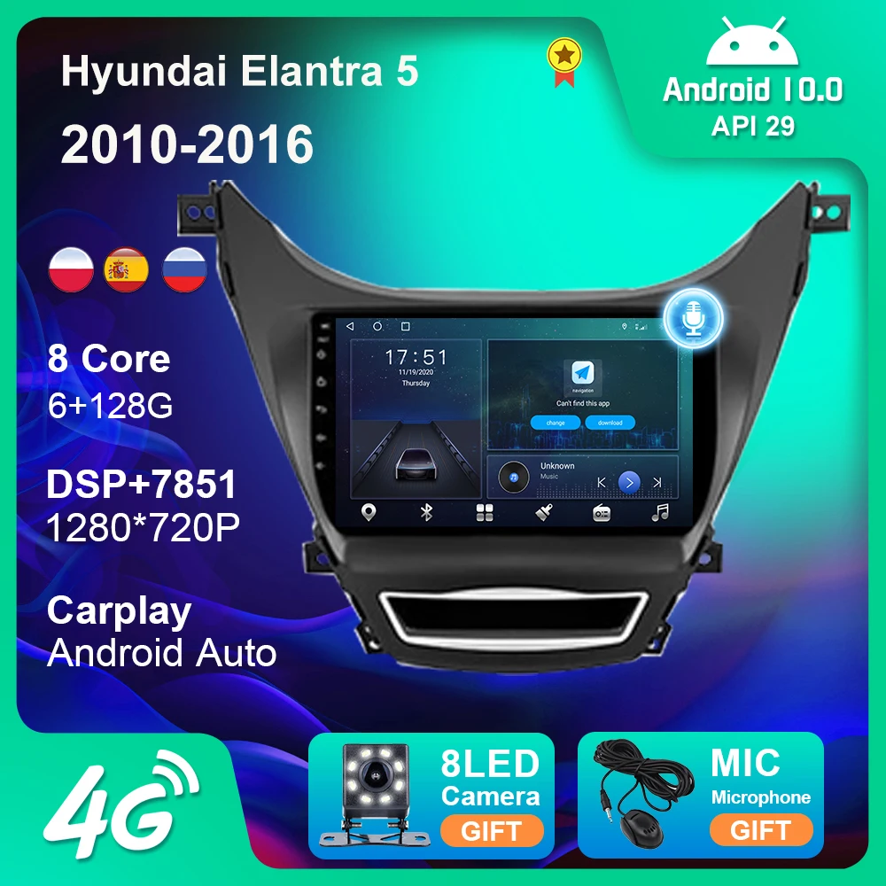 Автомобильное радио, стерео, GPS-навигатор, Android 10 для Hyundai Elantra 2010-2016, Android Auto, 4G, Wi-Fi, BT, DSP, BT, Carplay, 2 Din, DVD-плеер