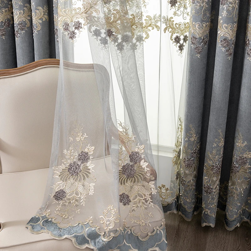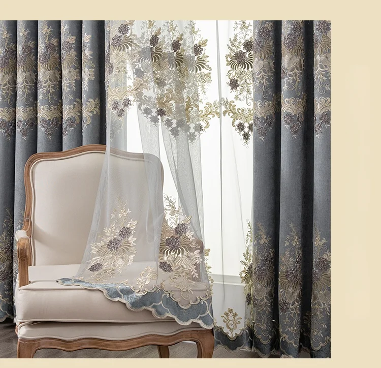 Европейские шторы с вышивкой, роскошные шторы с атмосферным затенением, готовые шенильные шторы на заказ для гостиной, столовой, спальни