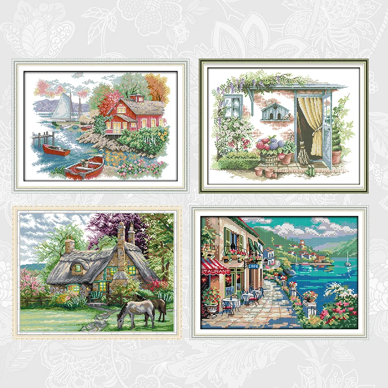 Картины на холсте Waterside House, Китайская вышивка крестом 14CT 1...