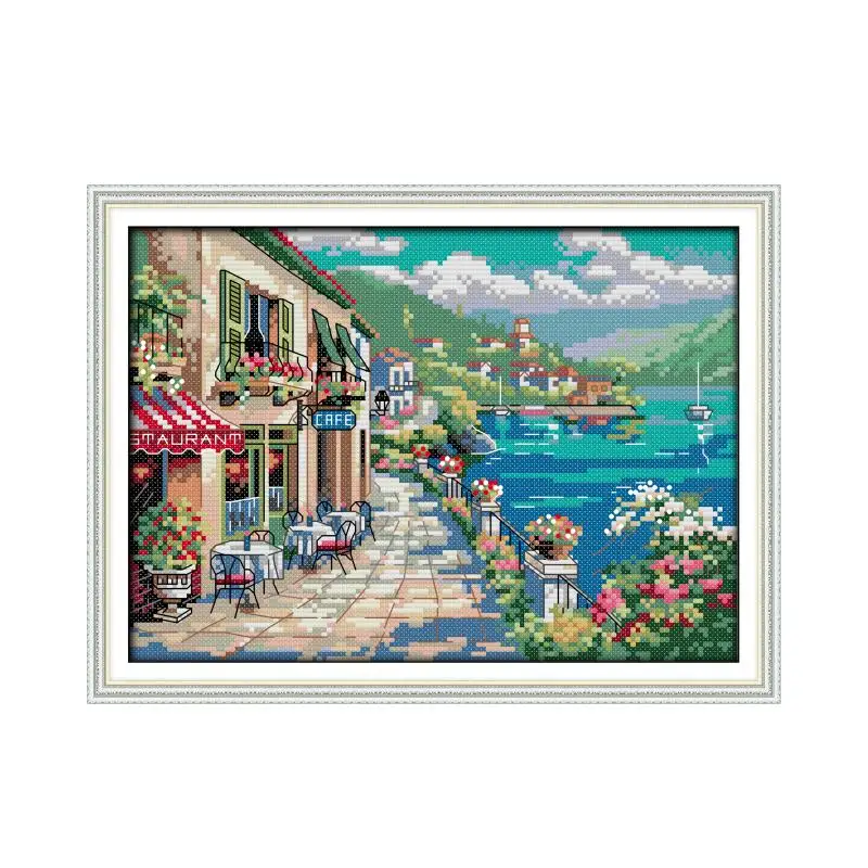 Цветы вилла наборы вышивки крестиком напечатанный холст 14CT 11CT ткань Приморское кафе DIY ручной работы начинающих вышивка рукоделие Наборы