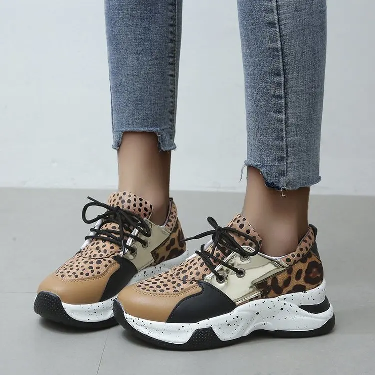 Женские кроссовки с леопардовым принтом, на шнуровке, Вулканизированная подошва, спортивные дышащие кроссовки на платформе, новинка 2022