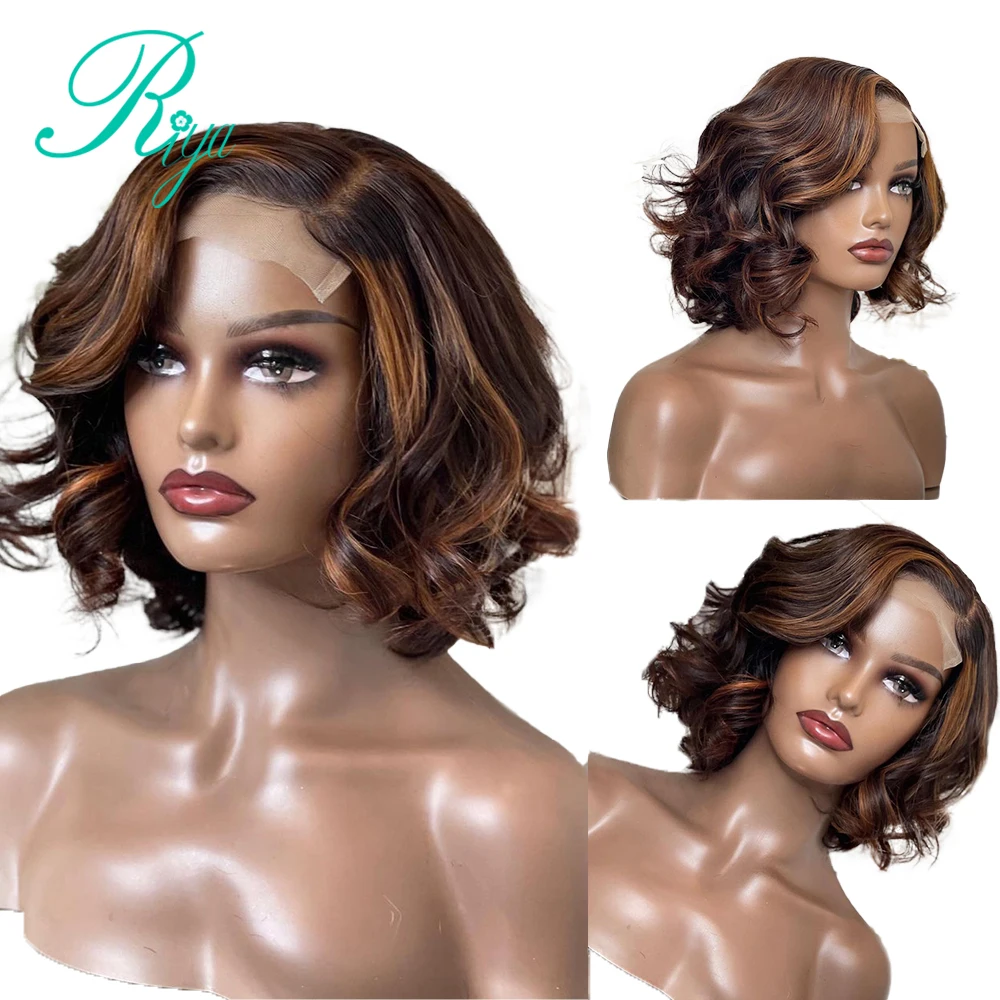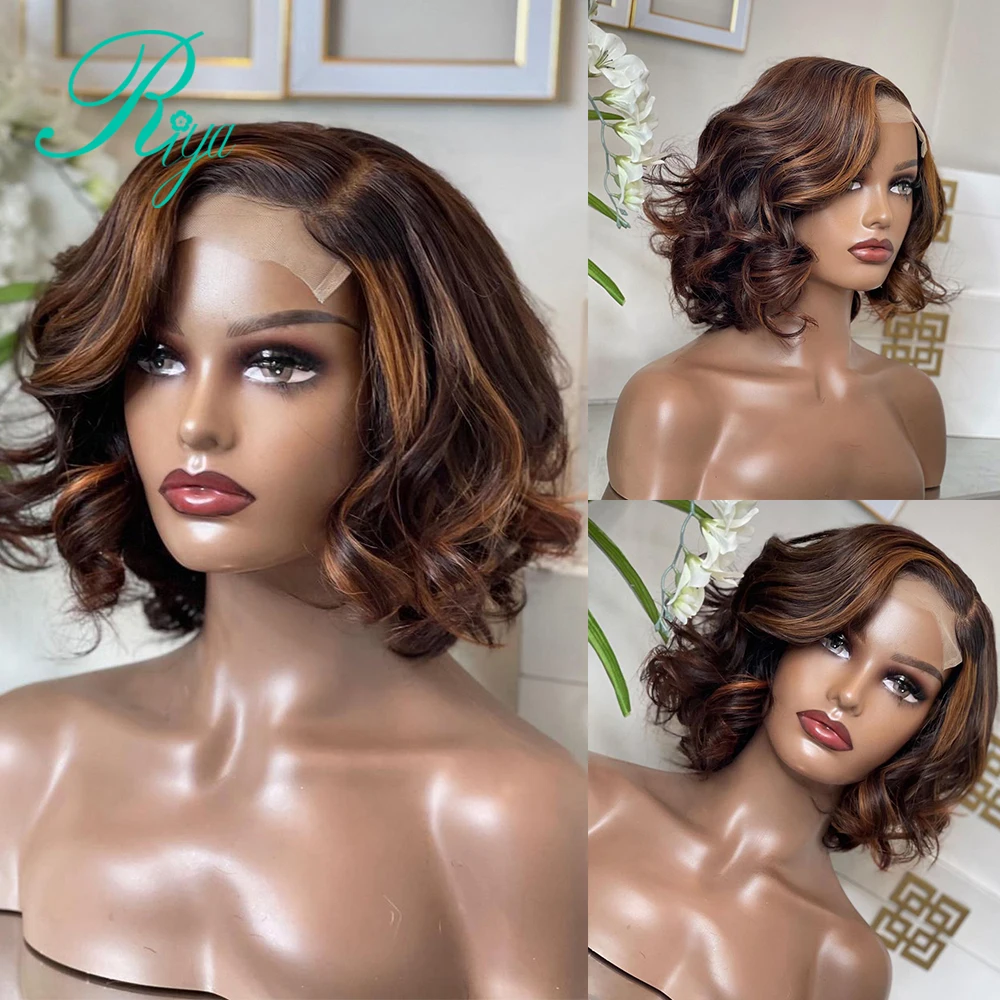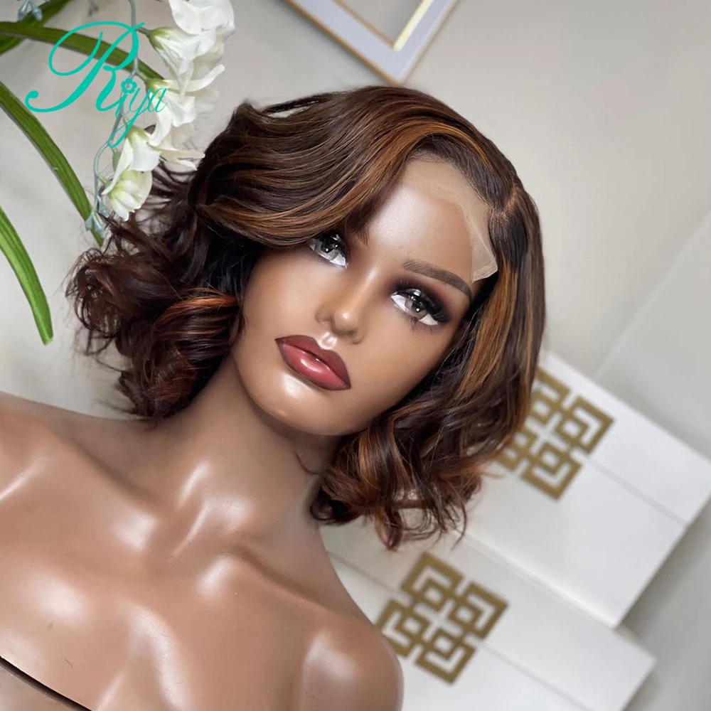 Невидимый парик из натуральных волос 4X 4 на сетке спереди, хайлайтер Омбре, медовый светлый цвет, короткие волнистые волосы, бразильские волосы Remy