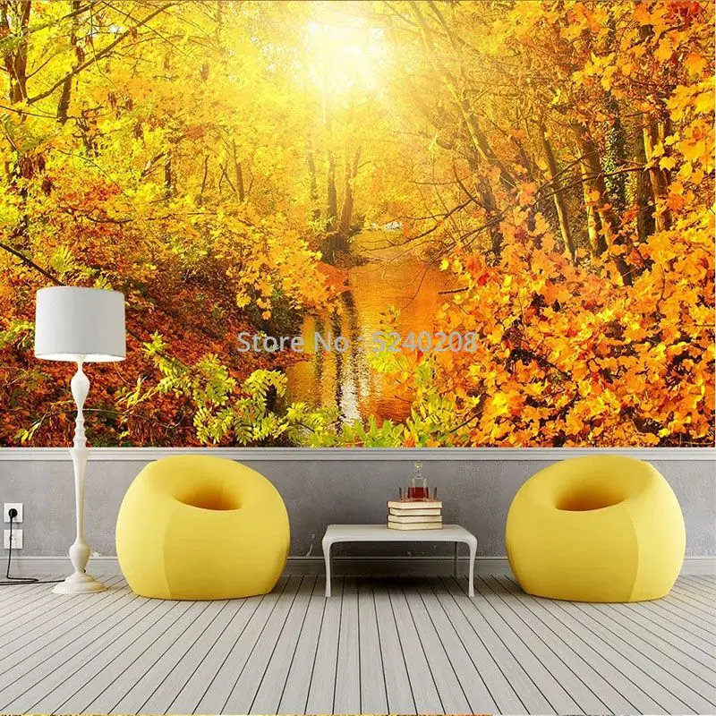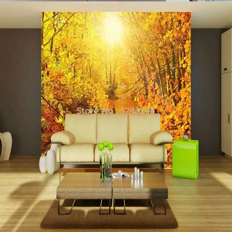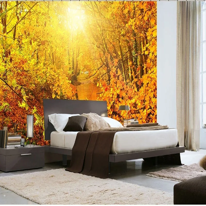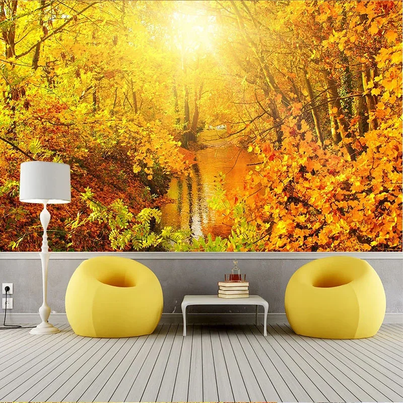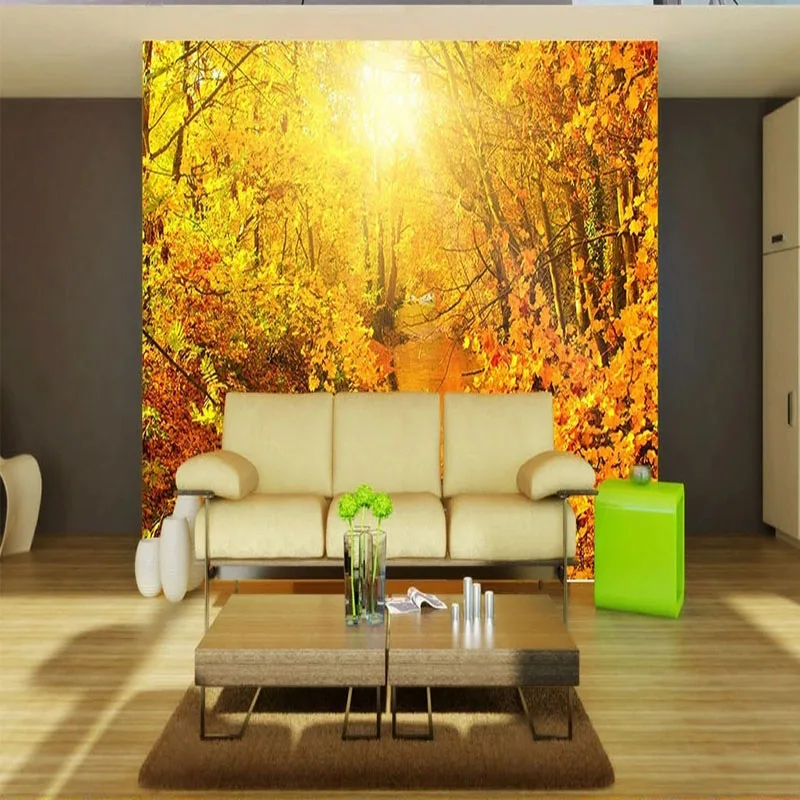 Фотообои на заказ, 3D, Золотая Осенняя лесная дорожка, для гостиной, фона для телевизора, Самоклеящиеся 3D наклейки, фрески