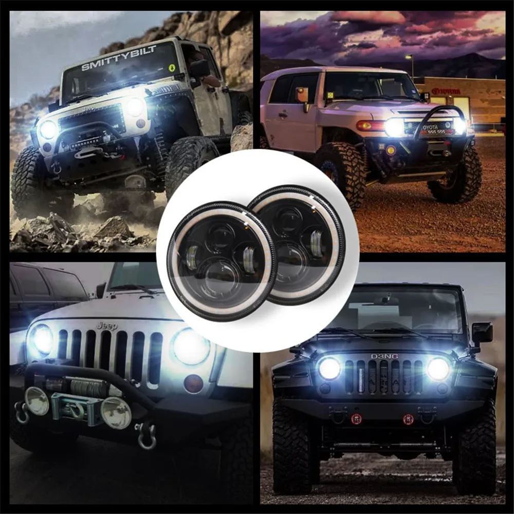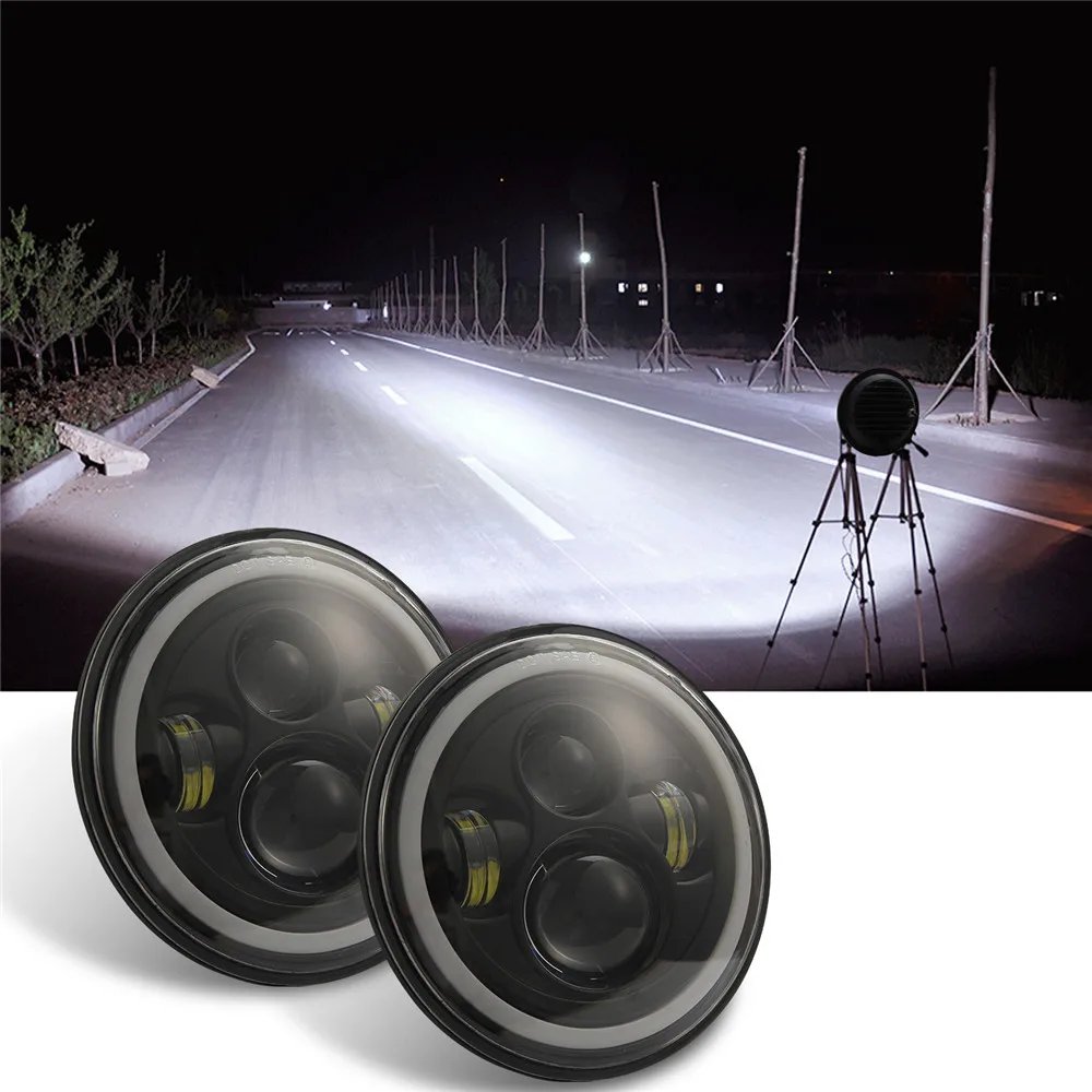 1 шт. 7-дюймовые светодиодные фары H4 DRL дальнийближний свет 50 Вт 30 Вт кольцо ореола Янтарный глаз ангела для Нива мотоцикла Лада внедорожника 4x4 УАЗ 12 В 24 В