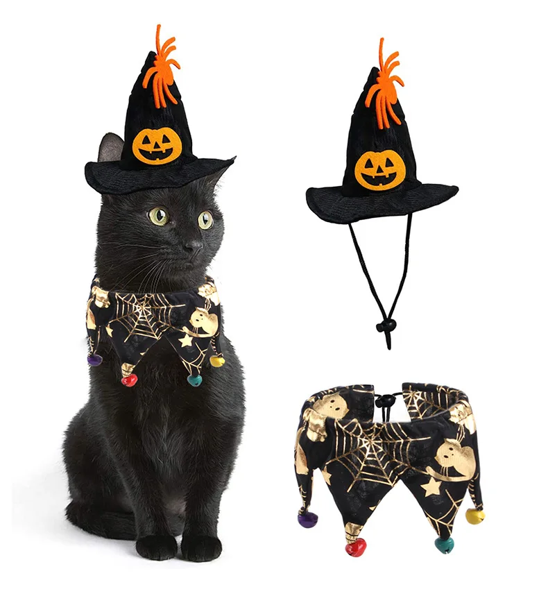 Один комплект ошейник для Хэллоуина и шляпа ведьмы для домашних жив...