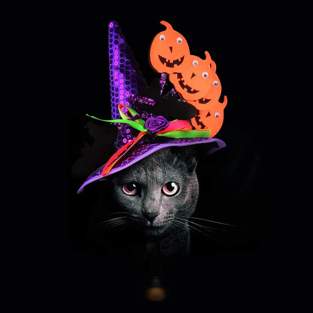 Кошачий воротник в стиле Хэллоуин и Шляпа Волшебника с рисунком пау...