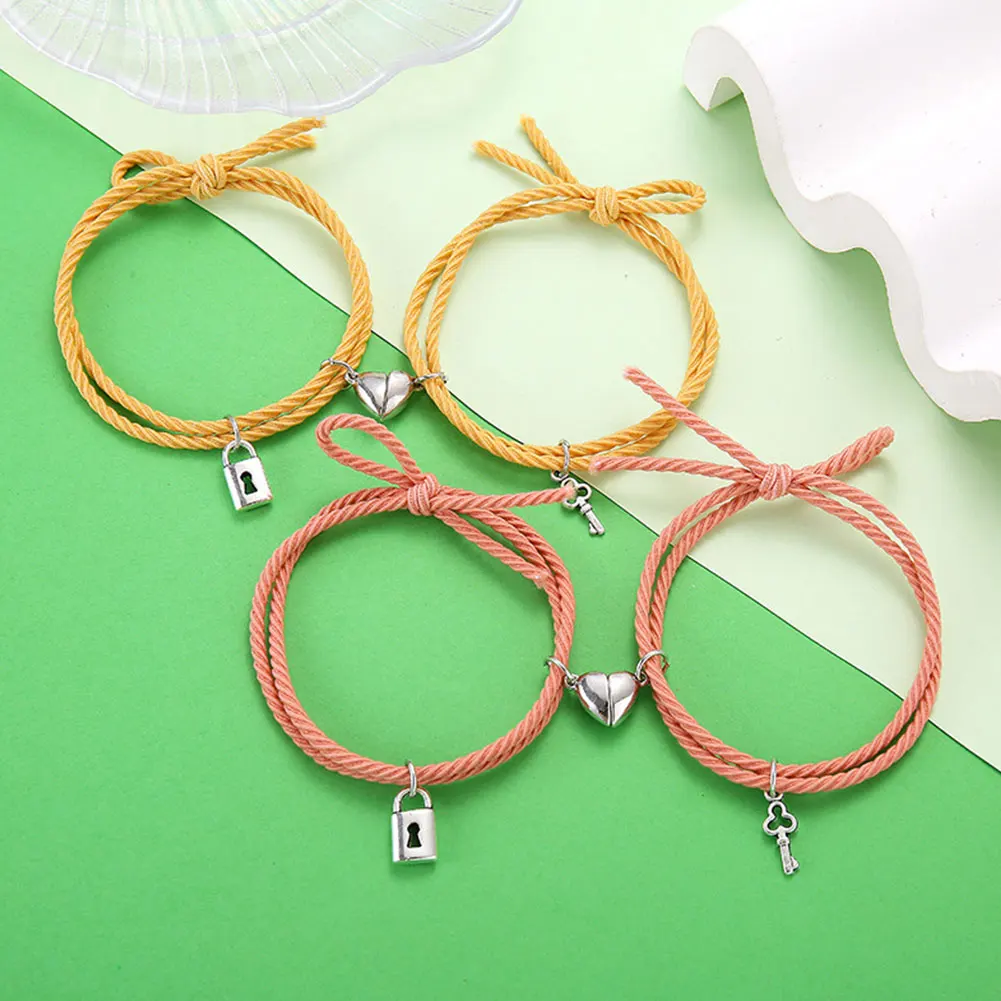 2 шт.компл. магнит в форме сердца притягивающий двойной браслет с замком подвеска в виде ключа ювелирные изделия в виде сердца Регулируемая плетеная веревка браслет