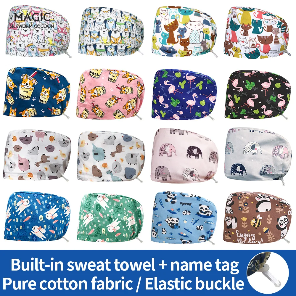 Шапка медсестринская с принтом животных, мягкая впитывающая пот пол...