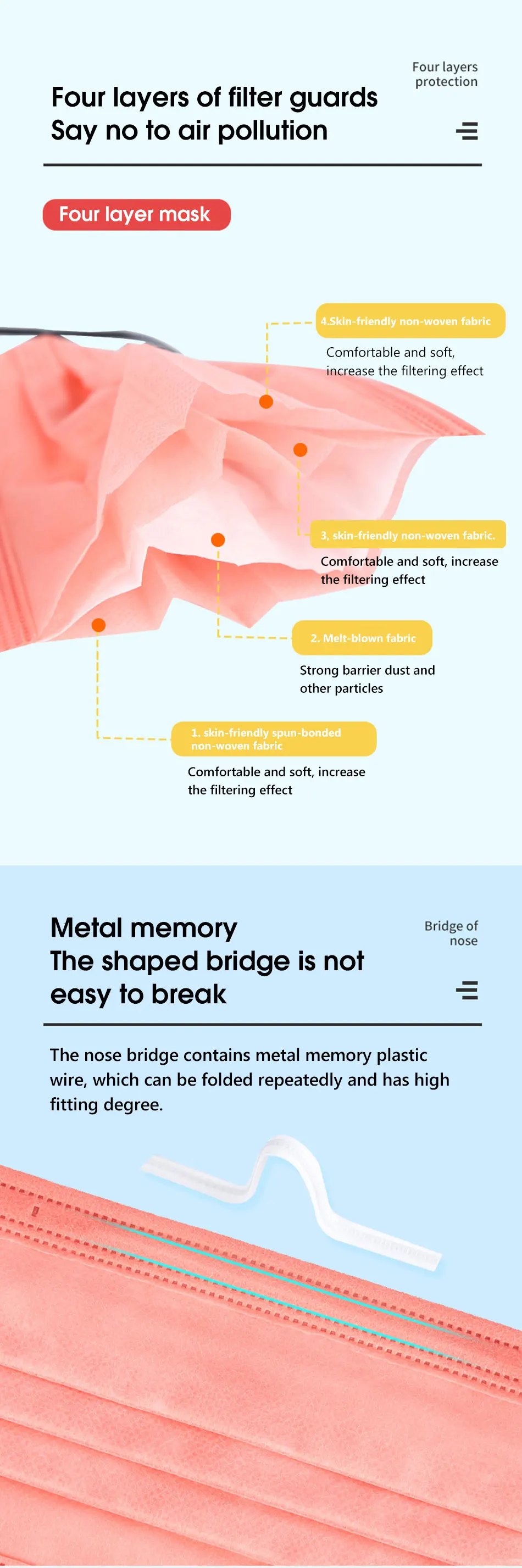 Материал:Нетканая ткань + выдувная ткань из расплава, высококачественная ткань из спанлейса