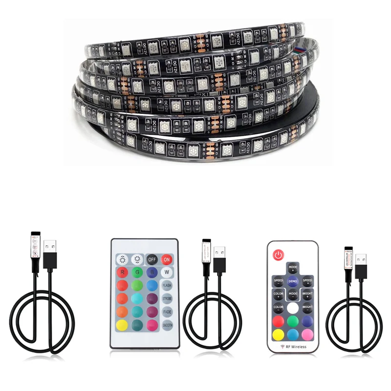 Неоновая Светодиодная лента 5 в постоянного тока RGB BPCB 5050 SMD гибкая Водонепроницаемая светодиодная лента 60 светодиодовм с USB пультом дистанционного управления 3 17 24 клавиши Волшебный дом 5 м