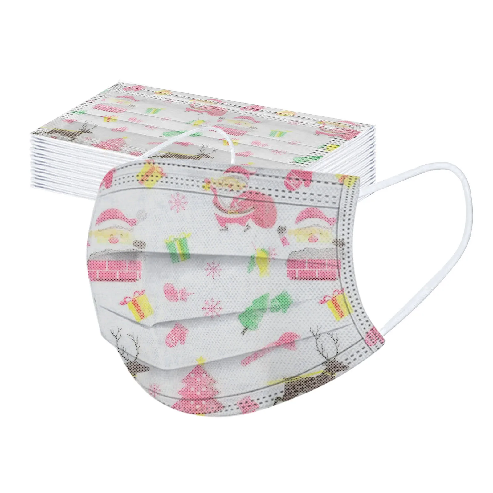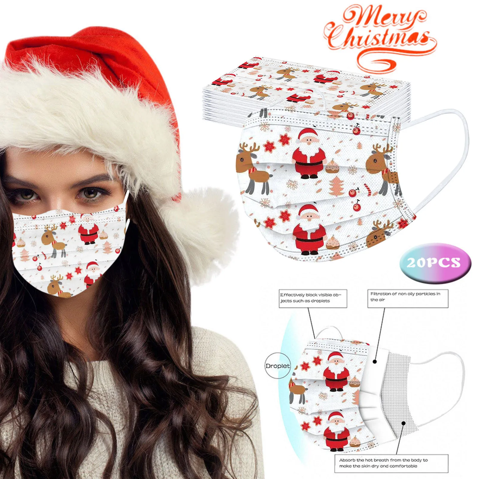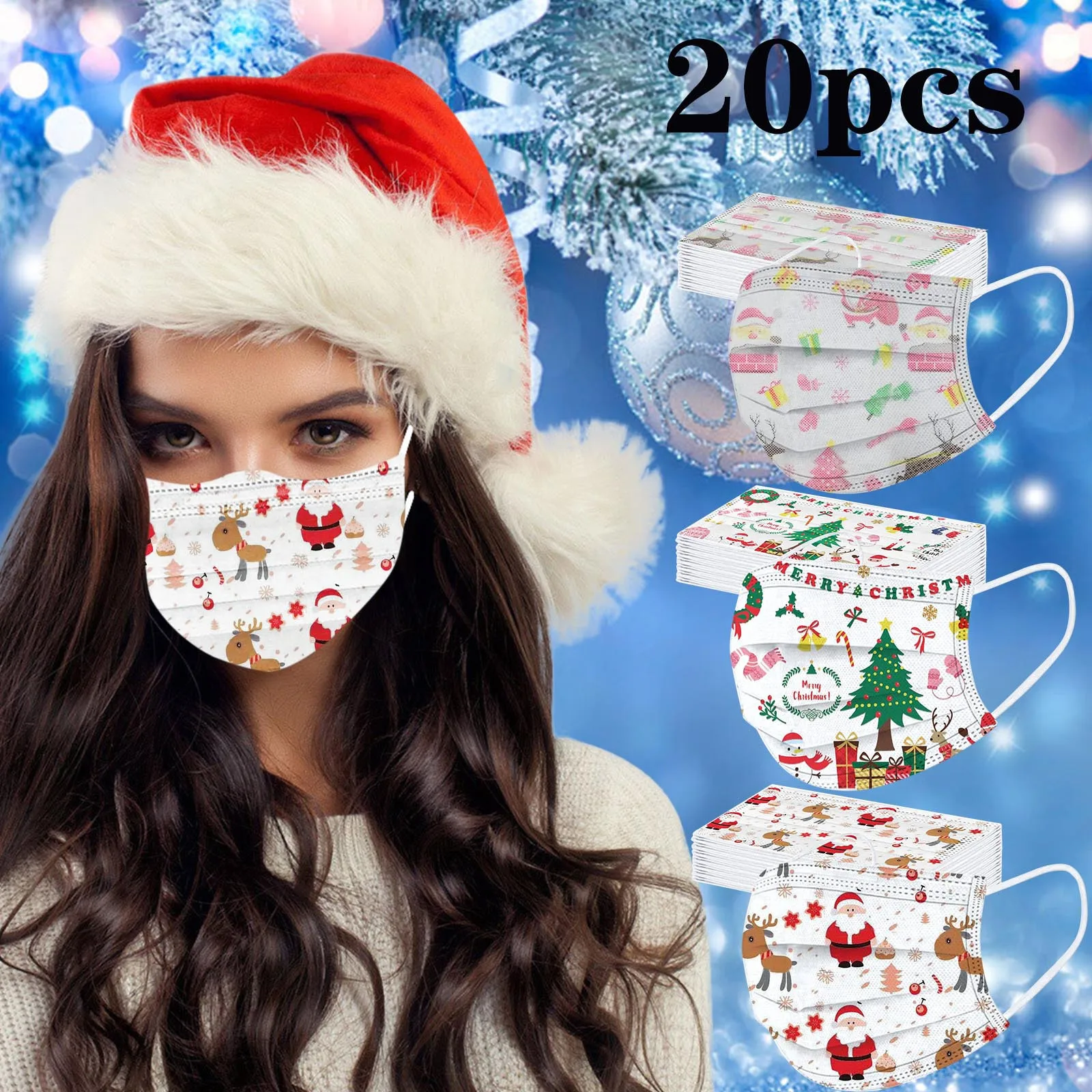Маска одноразовая трехслойная из нетканого материала, с рождественским принтом, для косплея на Хэллоуин, 20 шт.