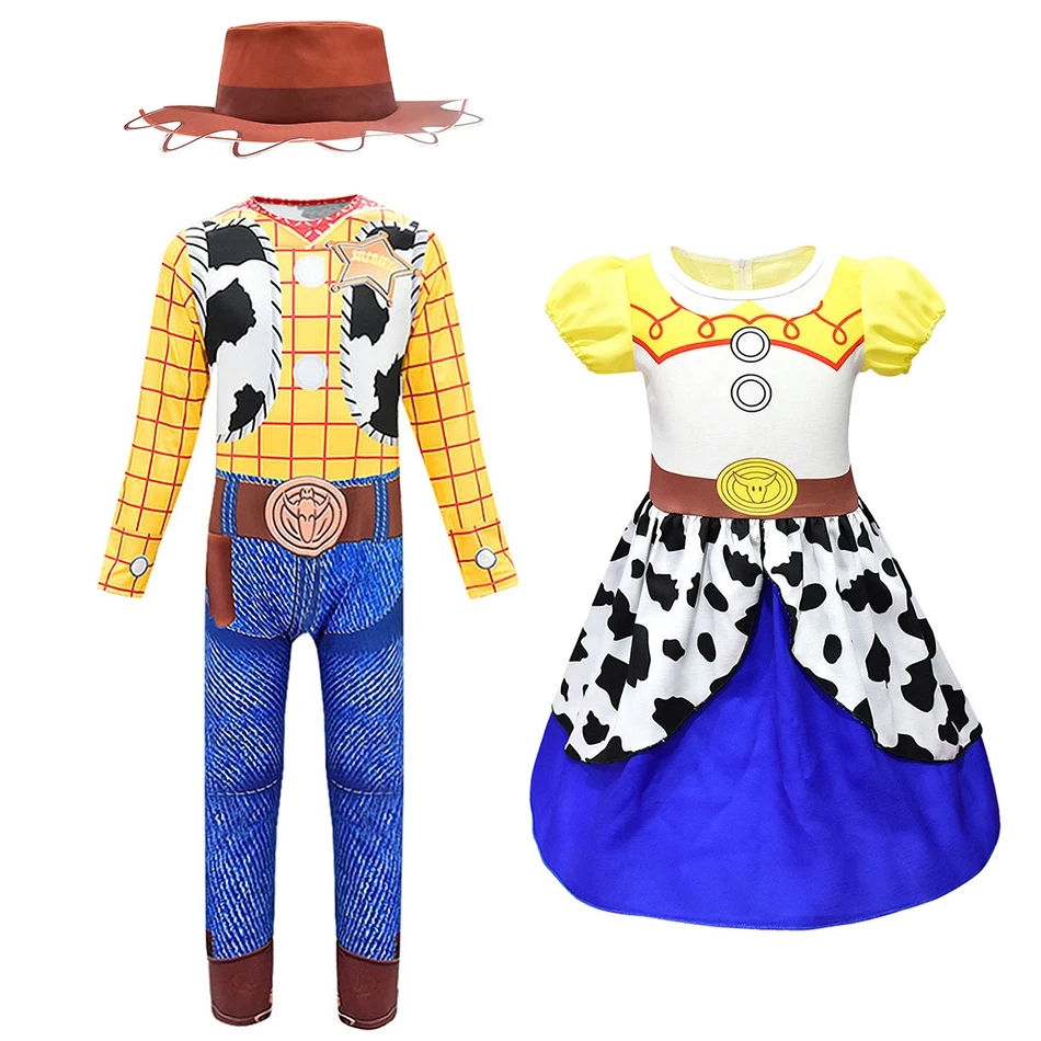 Детский комбинезон для косплея для мальчиков и девочек, костюм шерифа Вуди в ковбойском стиле, платье Джесси с 3D-принтом для Хэллоуина