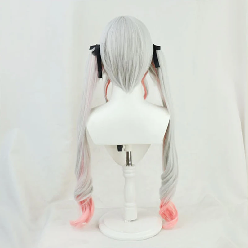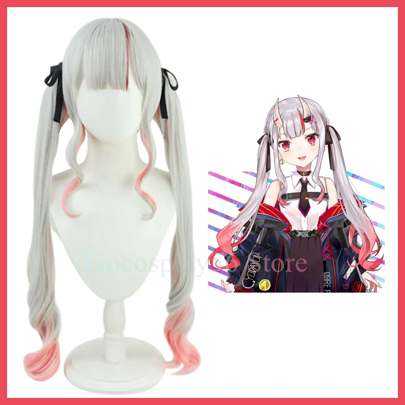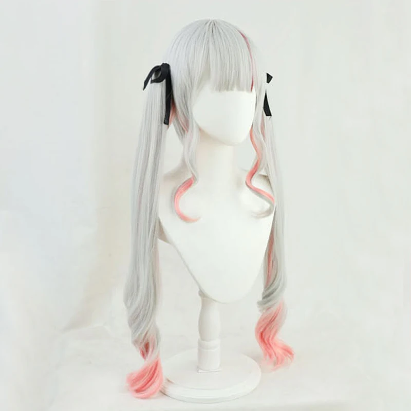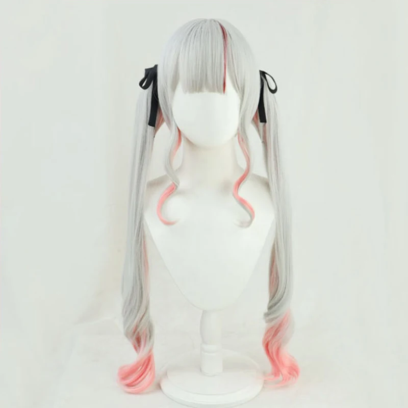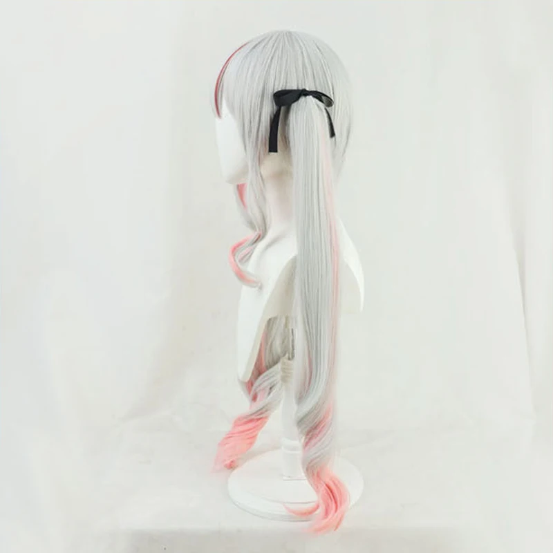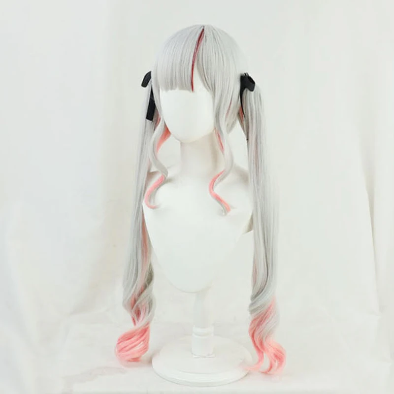 VTuber Nakiri Ayame парик кудрявые хвосты Hololive Косплей смешанный серый розовый 100 см длинные волосы Youtuber девушки Holo без граффити
