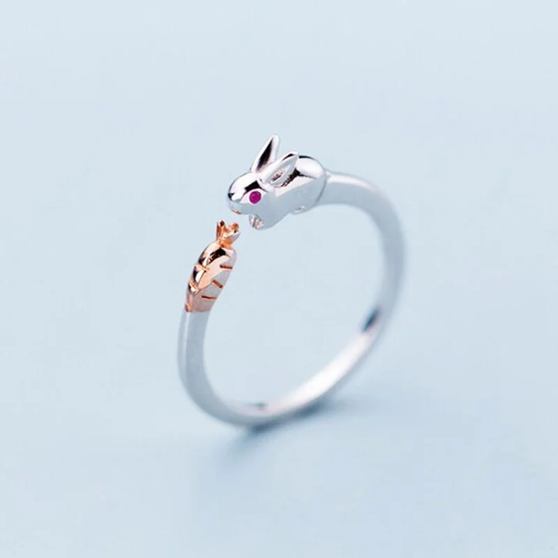 Женское Открытое кольцо с кроликом и морковкой, регулируемый размер...