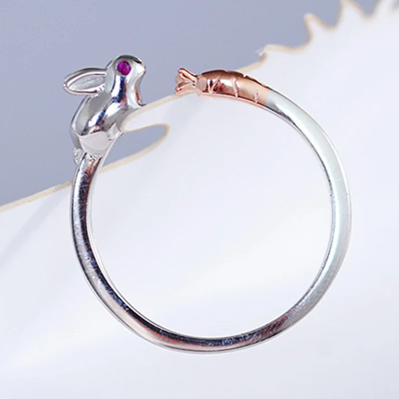 Креативные открытые кольца в виде кролика, из серебра 925 пробы