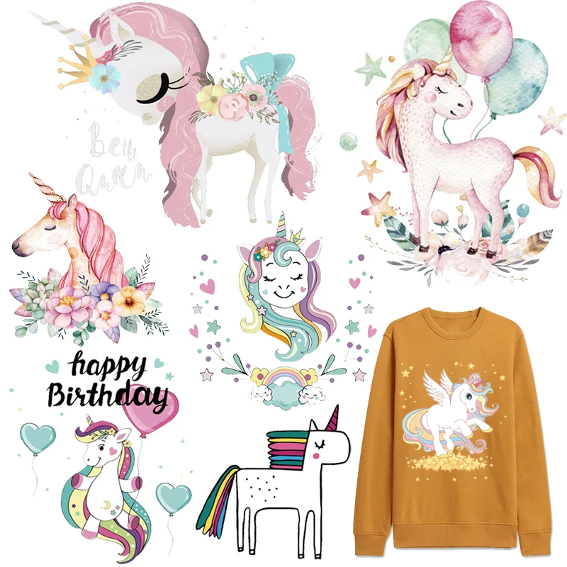 Термонаклейки на одежду пони, термоклейкие наклейки нашивки в форме единорога для детских платьев, патч аппликация сделай сам