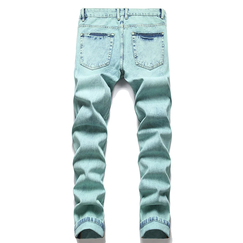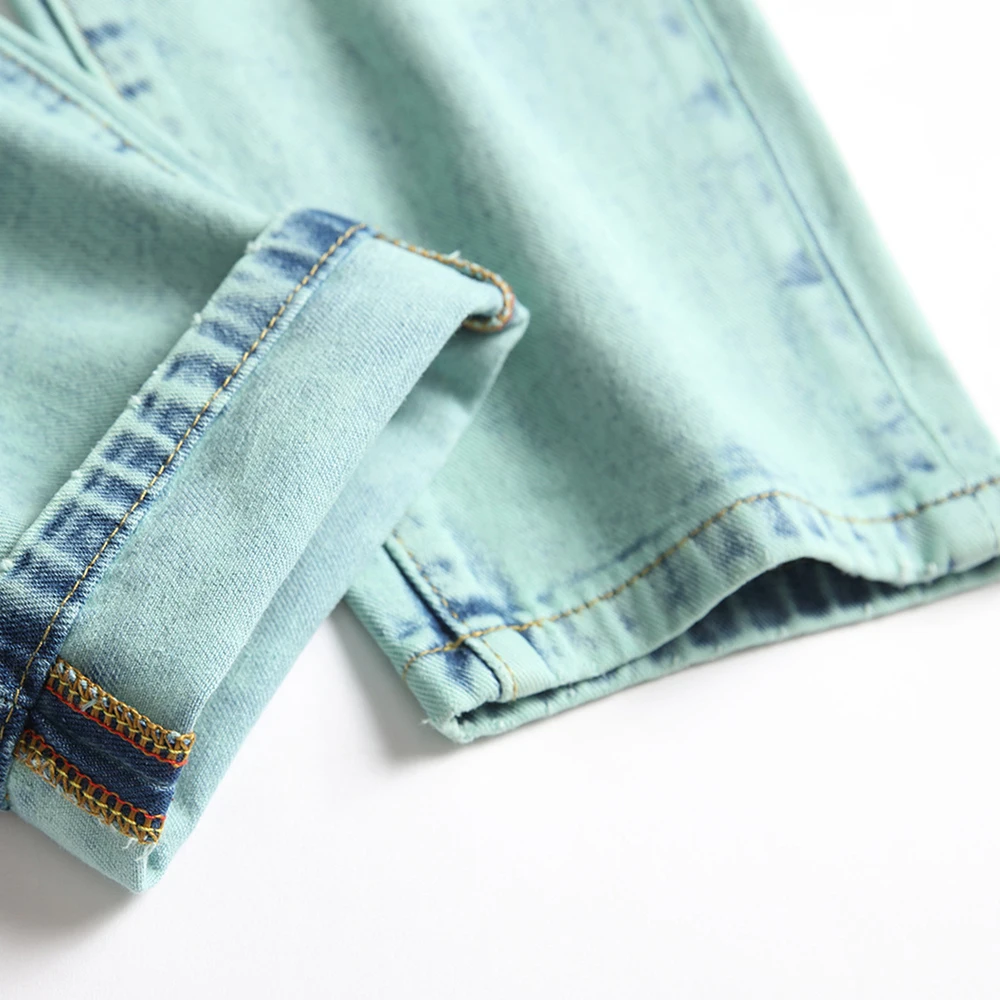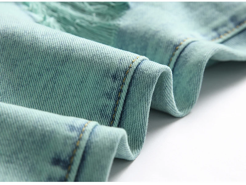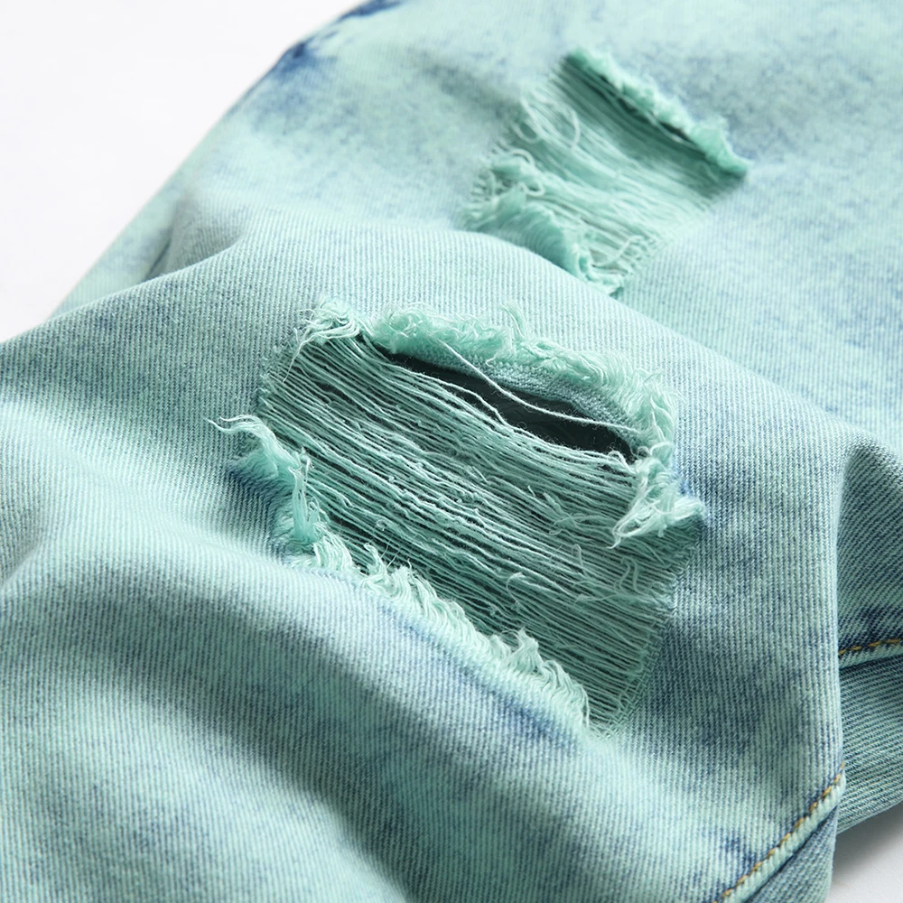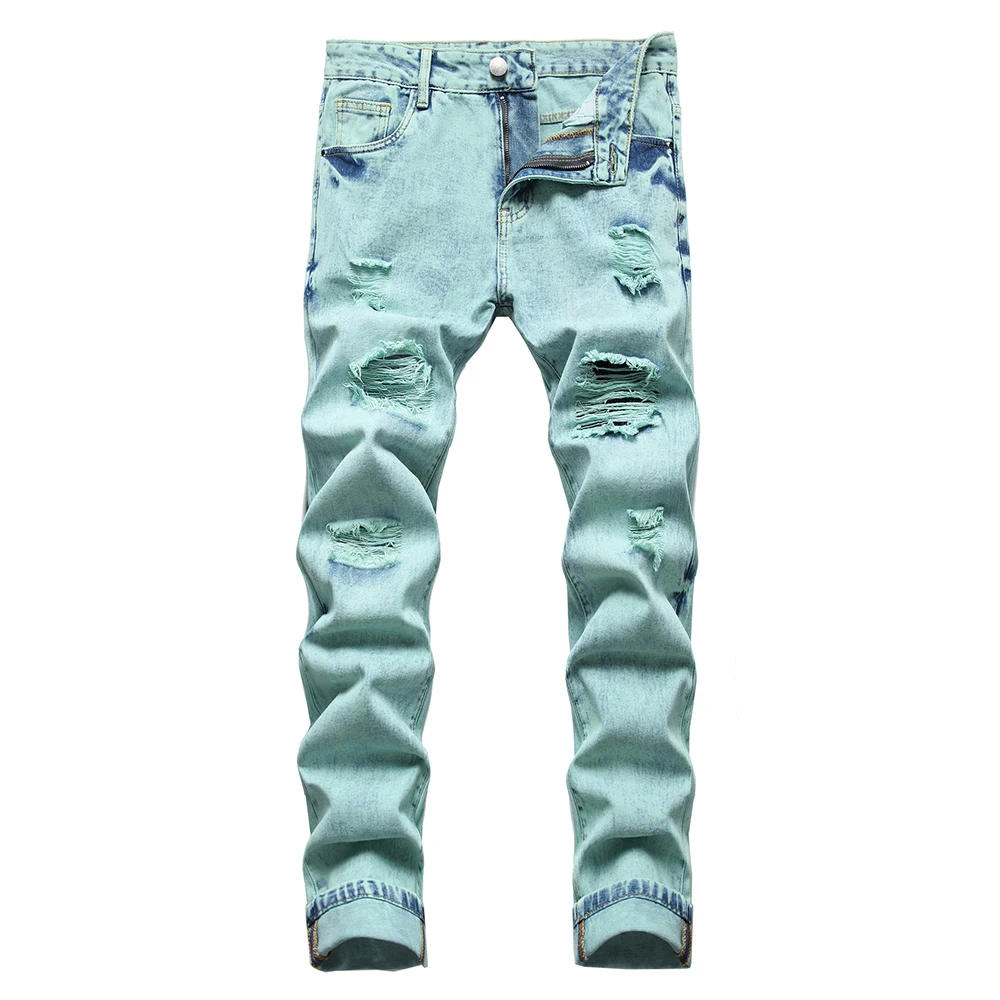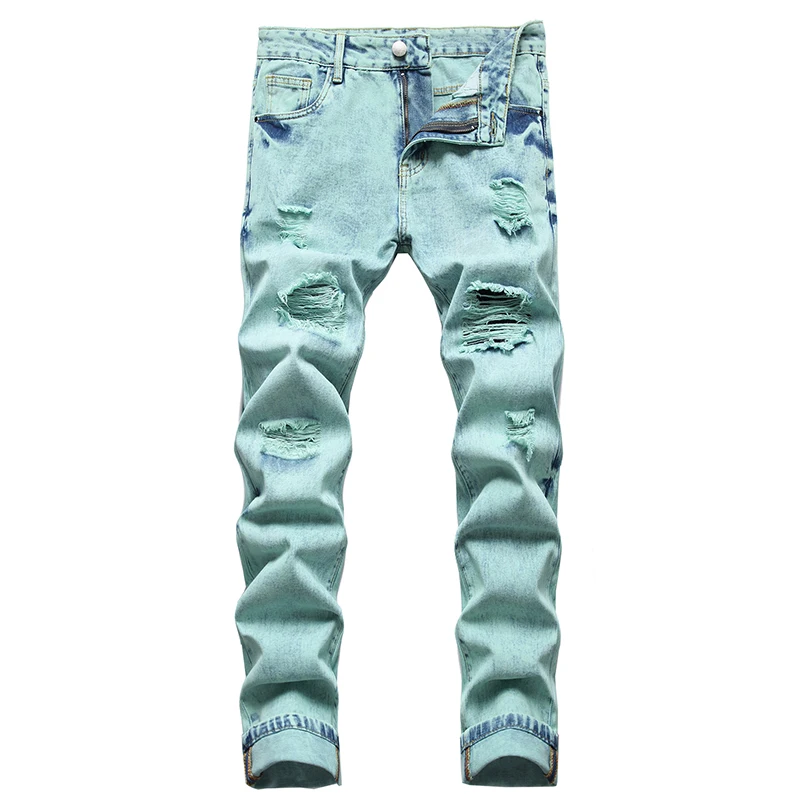 Мужские рваные джинсы Y2K с зелеными дырками, уличные прямые брюки, трендовые брюки