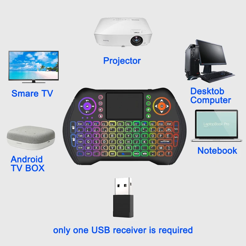 Мини-клавиатура Беспроводная цветная с подсветкой, 2,4 ГГц